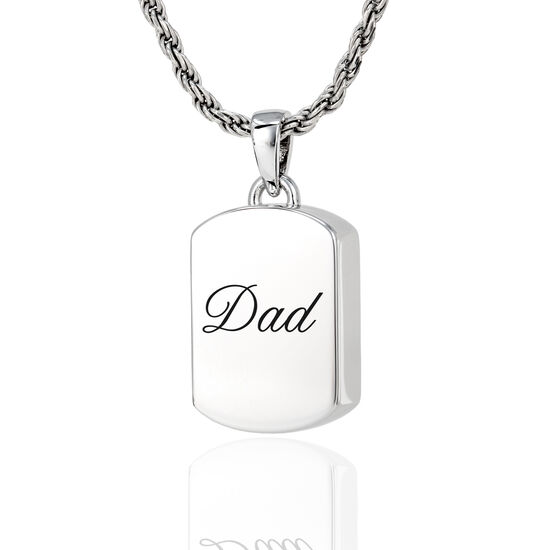Personal Expressions jewelry and keepsakes can be personalized with fingerprints, photos or images, handwriting or signatures, or text engraving. Many of the products are available in a variety of materials, including Stainless Steel, Sterling Silver, 14k Yellow Gold, 14k White Gold, 14k Rose Gold, or Platinum. Products that include a Chamber offers a hollow interior compartment that holds a small amount of your loved one's cremated remains, a lock of hair, or soil from a graveside. Production time for Stainless Steel and Sterling Silver is typically 1-3 days. Please allow an additional 4-5 weeks for 14k Gold and Platinum. An 18-inch chain is included with all pendants with the exception of horizontal bar pendant which comes with 16-20" adjustable chain.