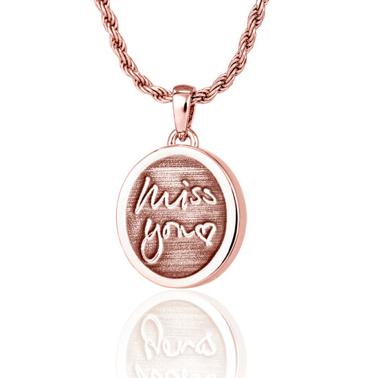 Petite Oval 14K Rose Gold With Chamber Pendant with 3D Handwriting